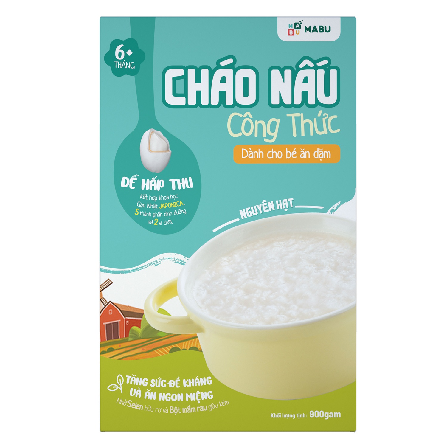 – Cháo nguyên hạt Mabu 900g Tăng cường sức đề kháng nhờ bổ sung vi chất Selen hữu cơ từ nấm men. Kích thích vị giác nhờ bổ sung vi chất Kẽm từ bột mầm rau. Vi chất có trong cháo Mabu nguyên hạt đáp ứng đủ nhu cầu tối thiểu của trẻ, giúp trẻ tránh được nguy cơ thiếu vi chất.