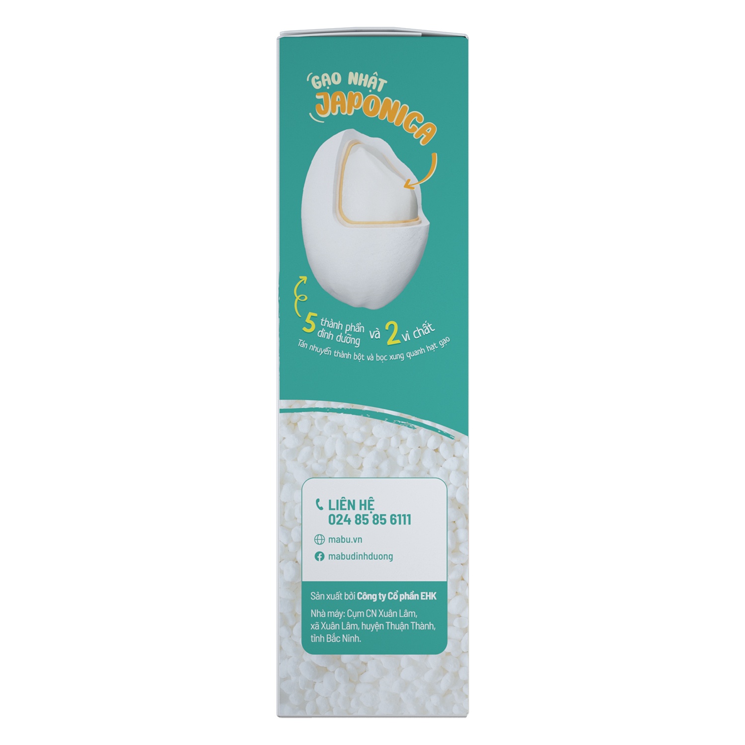 3 loại gạo đặc sản: Gạo Nhật Japonica, Gạo Tám thơm, Gạo Nếp cái hoa vàng. 3 loại ngũ cốc giàu dinh dưỡng: Hạt sen, Bột sắn dây, Đậu xanh. 2 vi chất thiết yếu cho cơ thể: Selen hữu cơ từ Nấm men và Kẽm từ Bột mầm rau.