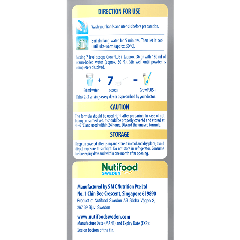 - Quy trình sản xuất sữa Nutifood GrowPLUS+ 1+ 800g tại Singapore khép kín, nguồn nguyên liệu có sự chọn lọc dưới sự giám sát nghiêm ngặt, hệ thống quản lý theo tiêu chuẩn chất lượng cao của Nutifood Thụy Điển, đảm bảo sự an toàn cho các bé yêu khi sử dụng.