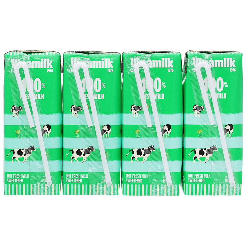 Sữa tươi tiệt trùng Vinamilk có đường 180 ml (1 lốc 4 hộp)