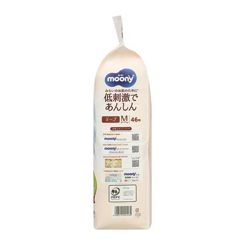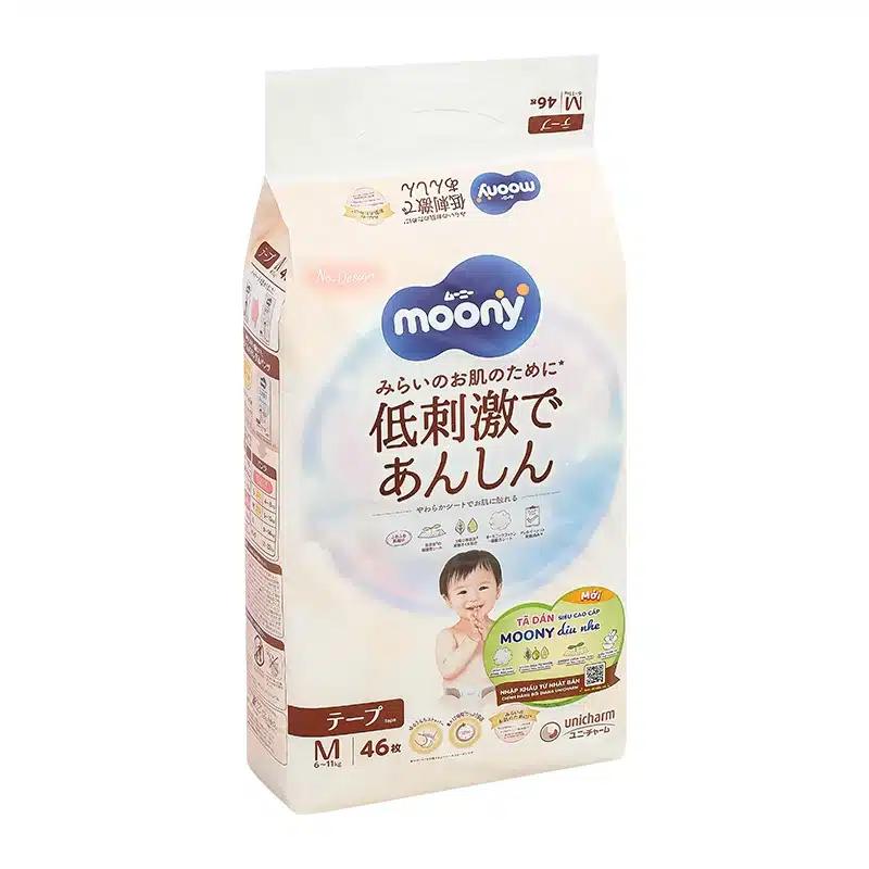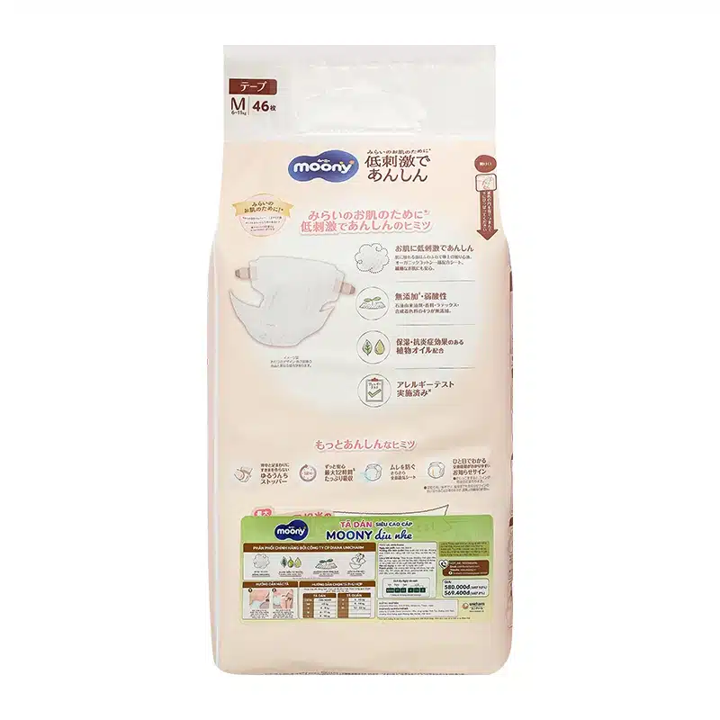 Đặc điểm nổi bật của bỉm – Tã dán Moony Natural dịu nhẹ size M 46 miếng (6 – 11kg)