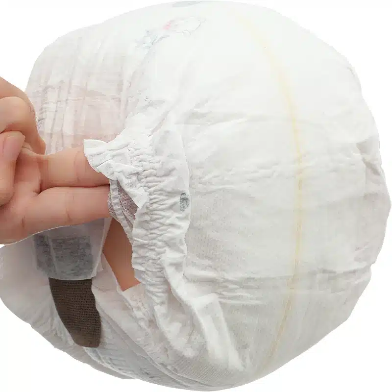 - Kéo chắc tay phần băng dính để tã vừa thật khít. Phần lưng hoàn toàn có thể co giãn nên mẹ không phải lo tã ôm quá chặt.